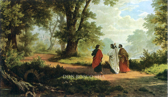 今日のこの福音書日課は、ある意味で、ルカ神学の頂点と縮図と言われています。「この日」と書いてあるのは、イエス様が復活された日、日曜日である週の初めの日のことです。この二人の弟子たちは、イエス様はもうこの世にはおられないと思い、エルサレムから自分たちの生活の拠点であったエマオに帰ろうとしています。エルサレムからエマオまでは60スタディオン、10㎞ほど、歩くと、2~3時間かかる距離になるでしょうか。その道々二人の弟子たちは、ここ数日エルサレムで起こった出来事について話し合っていると、イエス様御自身が近づいてきて、一緒に歩いて行かれました。なぜこの弟子たちは一緒におられる方がイエス様であると気付かないのか、不思議に思います。「二人の目は遮られていて、イエスだとは分からなかった」とあります。